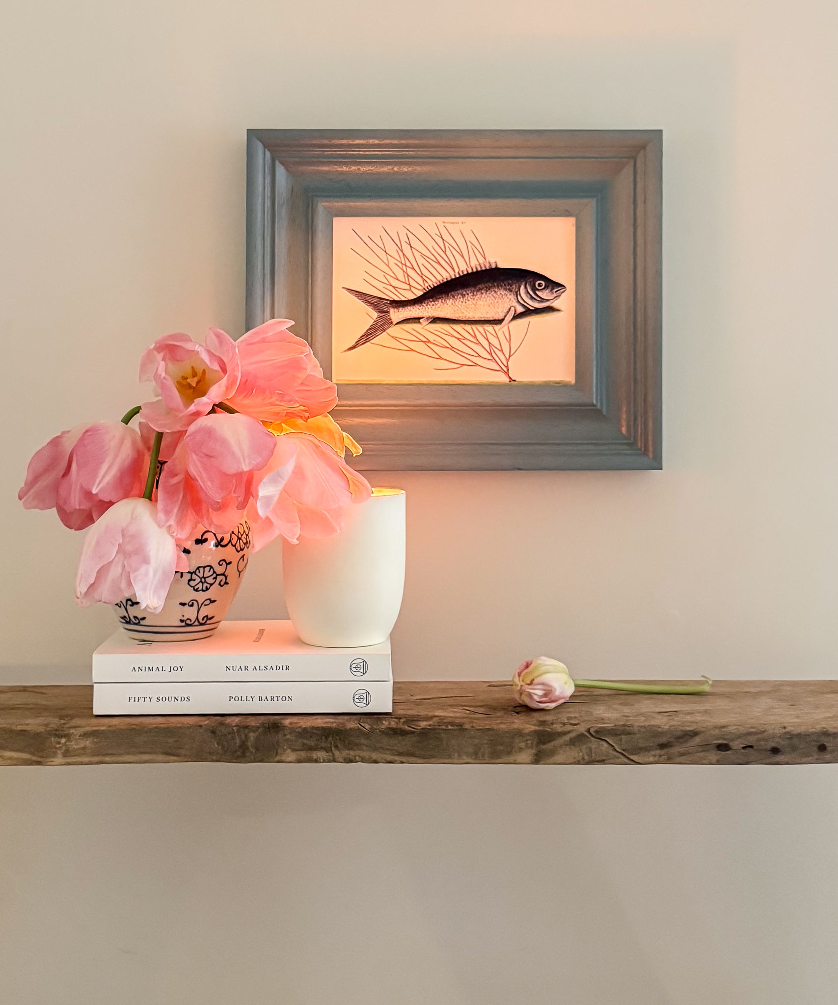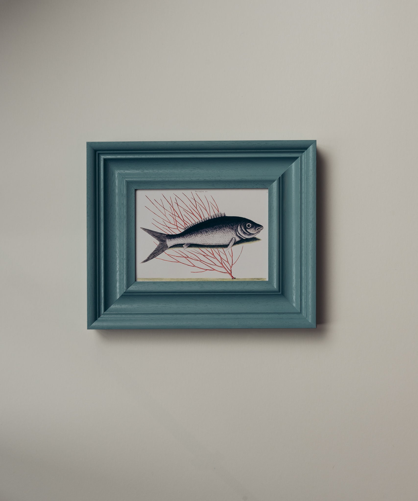 The Coral Fish is from our collection of antiques by the master Mark Catesby from the 18th Century. This particularly charming print showcases a Bone fish in front of coral. To compliment this beautiful work we used Farrow & Ball's Oval Room Blue with a high gloss finish. The perfect piece for the kitchen, bathroom or beyond.