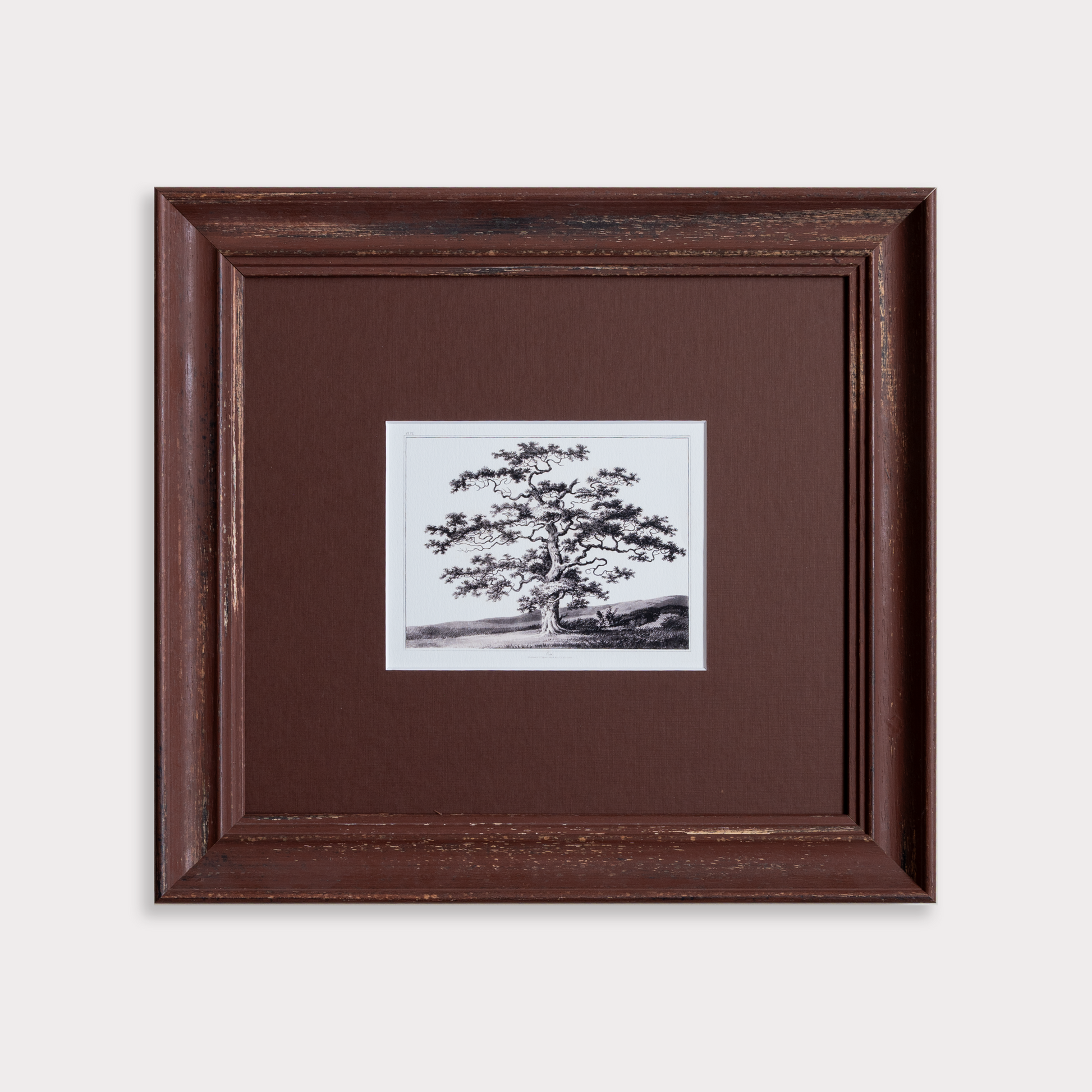 - Handmade frame in rich rustic brown with tonal mount