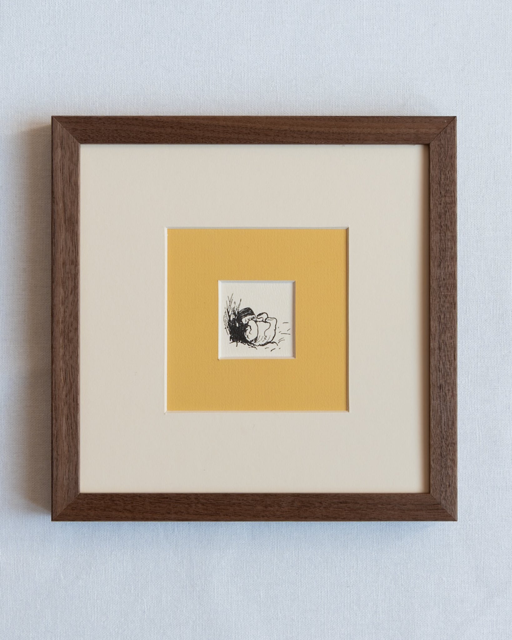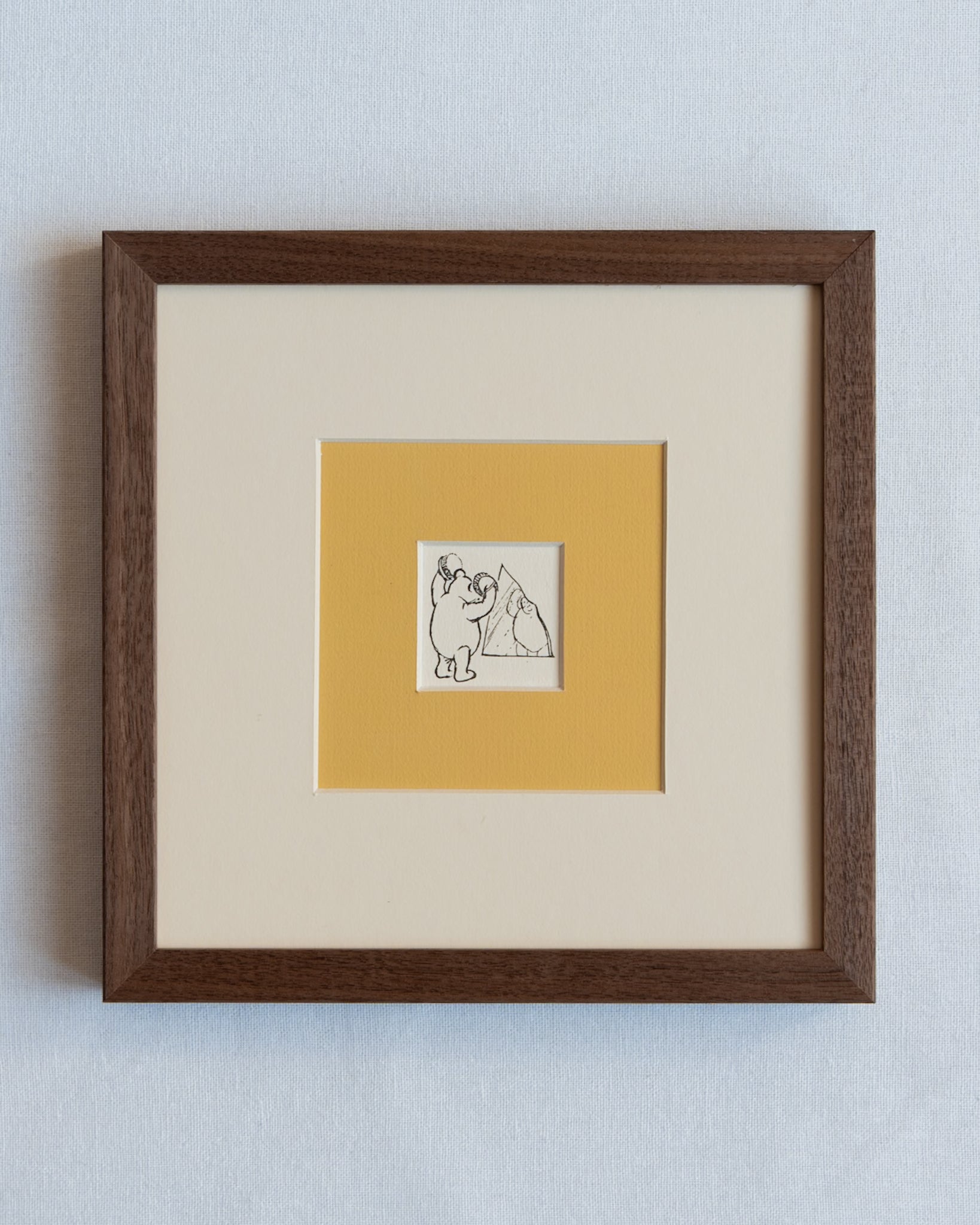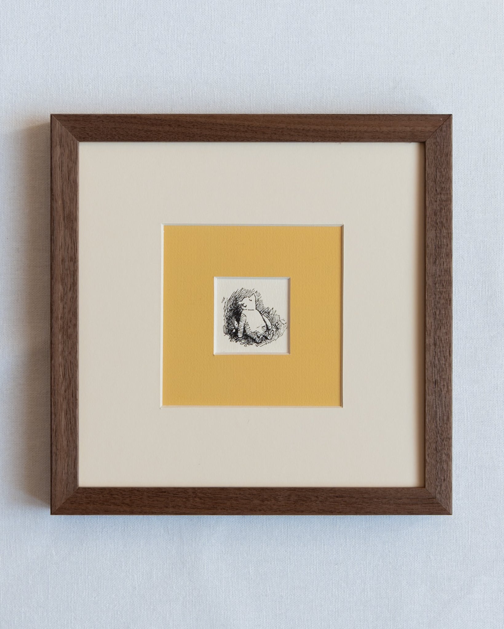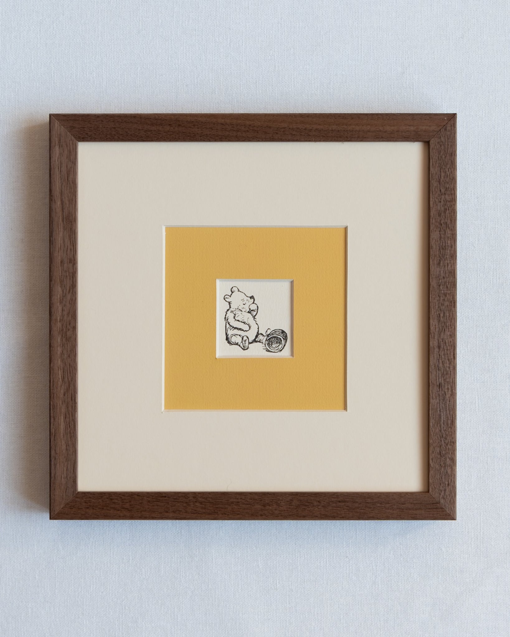 Add a touch of nostalgia and charm to your home with these beautiful reprints of the much loved Winnie the Pooh from A.A. Milne's classic tales. The four prints have been encased in a walnut frame featuring a double mount of antique white and of course... a rich honey yellow that has been hand painted. These pieces offer a classic and timeless touch of whimsy whether it is for the nursery, study or reading room.